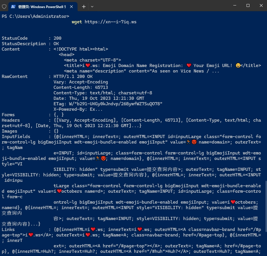 在 linux bash下 curl https://xn--i-7iq.ws 也可以显示,但是与cmd下完全不同。