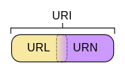 URI可被视为定位符(URL),名称(URN)或两者兼备。统一资源名(URN)如同一个人的名称,而统一资源定位符(URL)代表一个人的住址。换言之,URN定义某事物的身份,而URL提供查找该事物的方法。